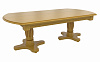 Большой овальный стол из массива березы, который с помощью трех вставок может быть увеличен почти вдвое. В собранном виде вставки находятся внутри стола. Одна из трех тонировок дерева на выбор покупателя.